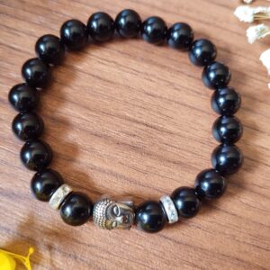 Shield yourself from negative energies and attract positivity with this Black Obsidian Evil Eye Protection Bracelet, featuring genuine natural stone beads and a symbolic Laughing Buddha charm. Black obsidian is widely known for its powerful protective properties, especially against the evil eye, psychic attacks, and emotional negativity.