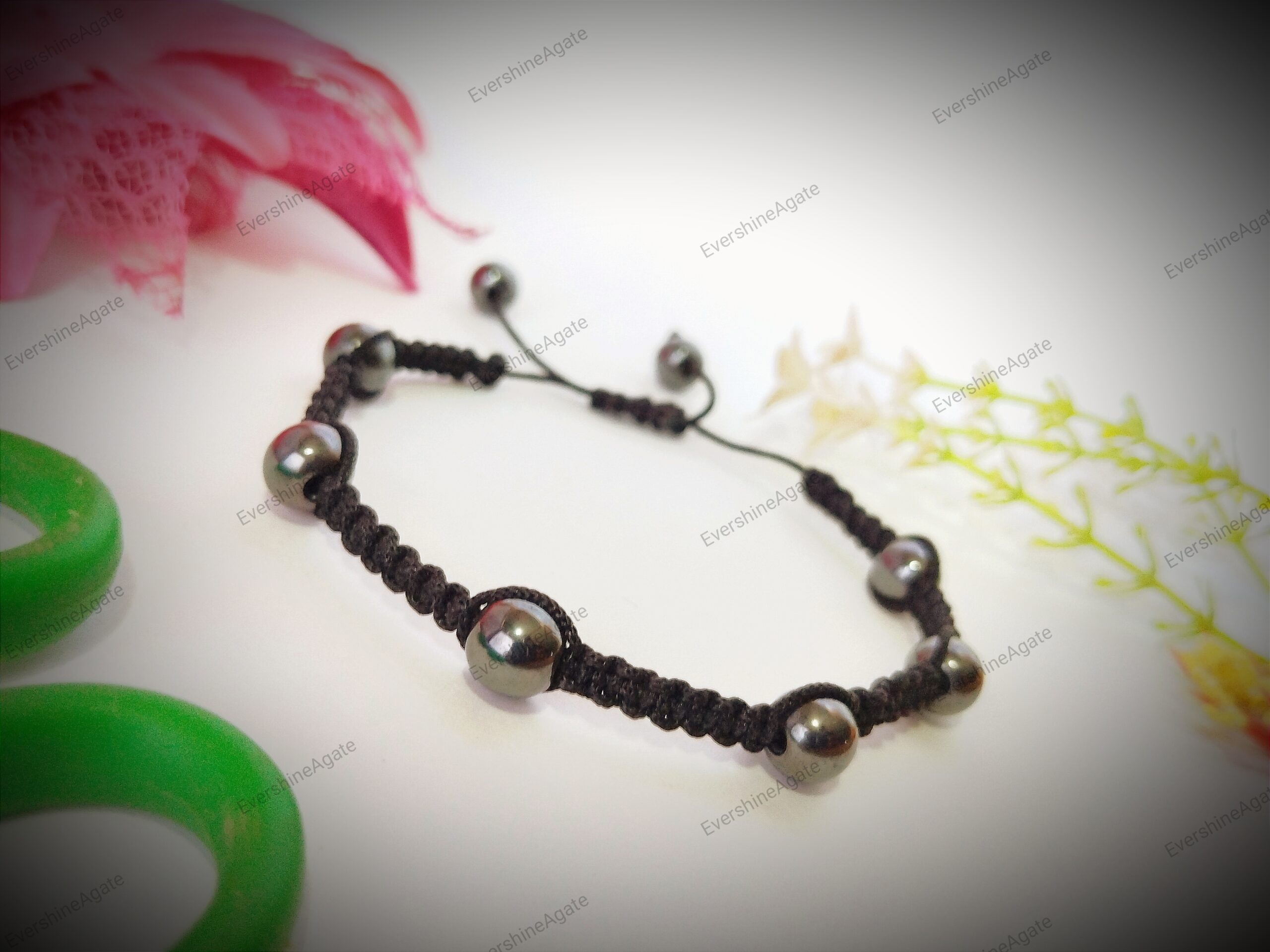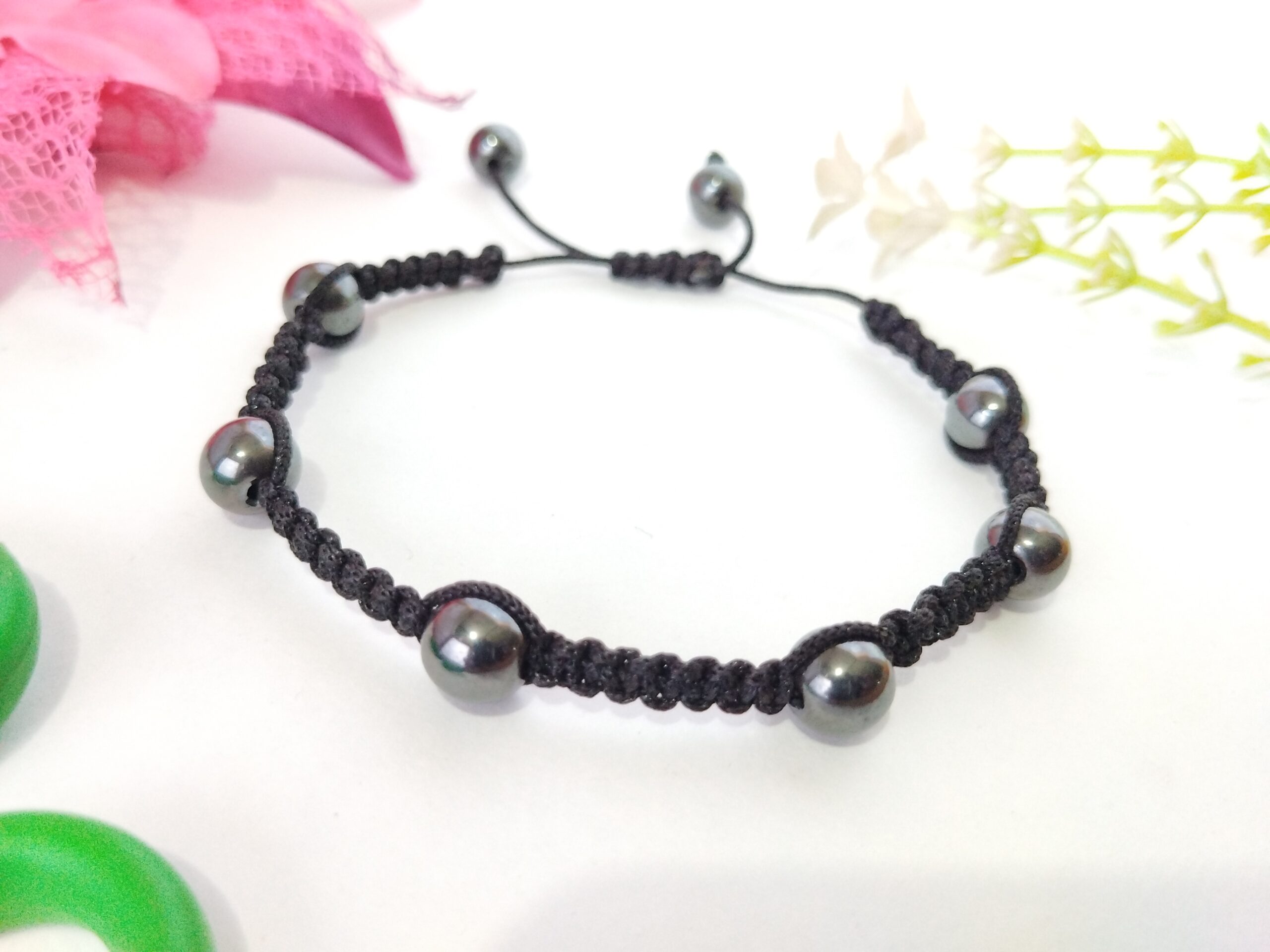 Evershine Natural Certified Hematite Bracelet 8 mm | Adjustable macrame | Crystal Stone Bracelet Round Shape for Reiki Healing and Crystal Healing Stones