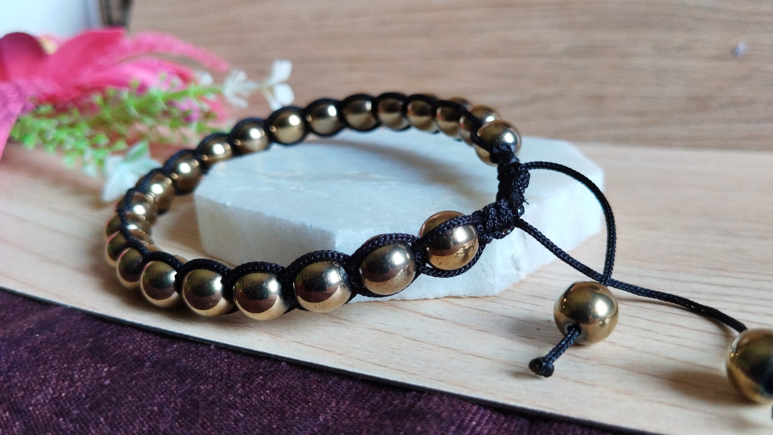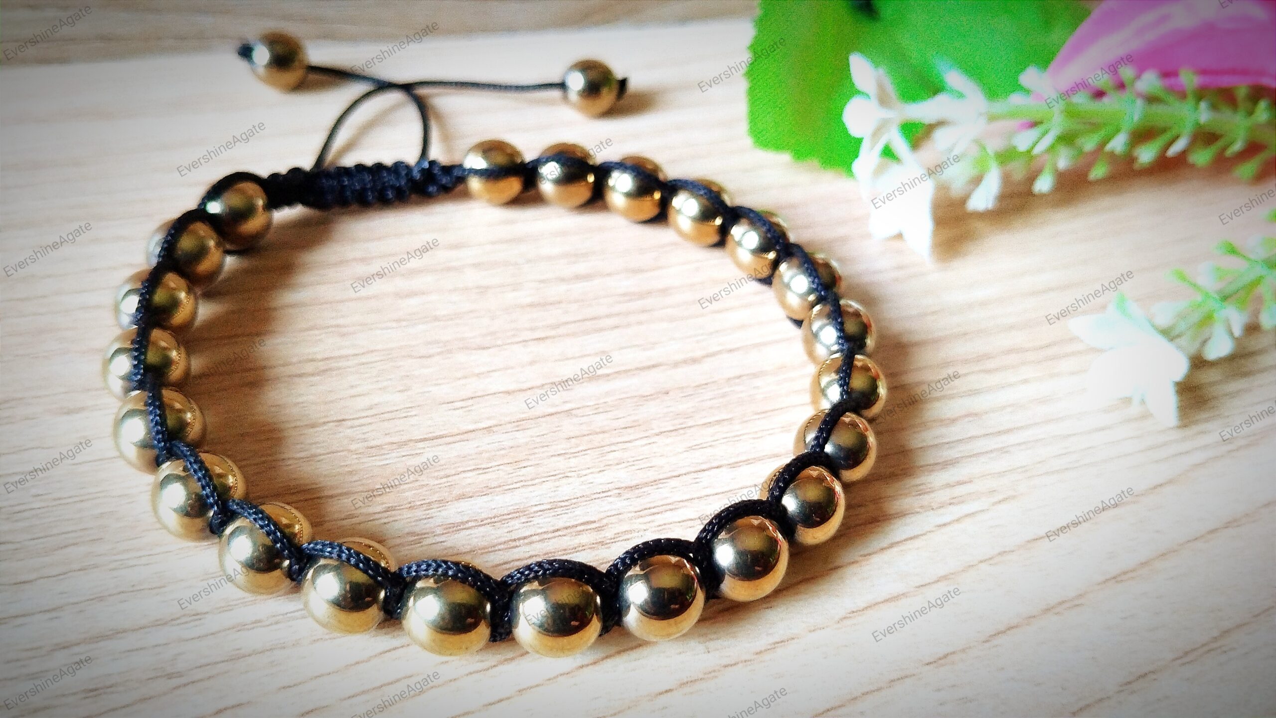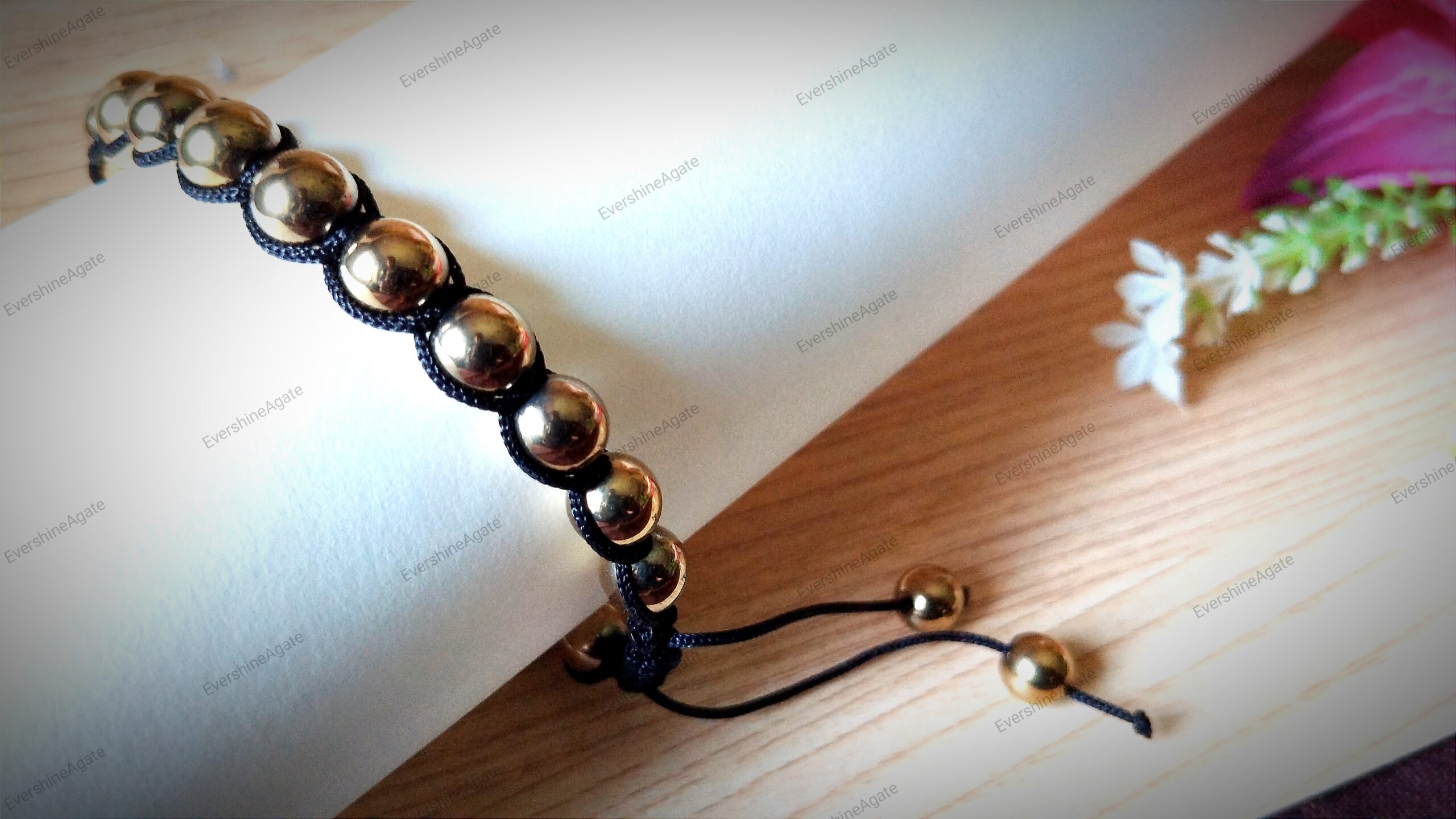 Each bracelet is carefully handmade using high-grade Golden Pyrite beads. Every 8mm bead is handpicked for its smooth finish, natural shine, and uniform shape. Strung on a durable, high-quality Adjustable Sliding Macrame Cord, this bracelet offers both style and resilience for everyday wear.